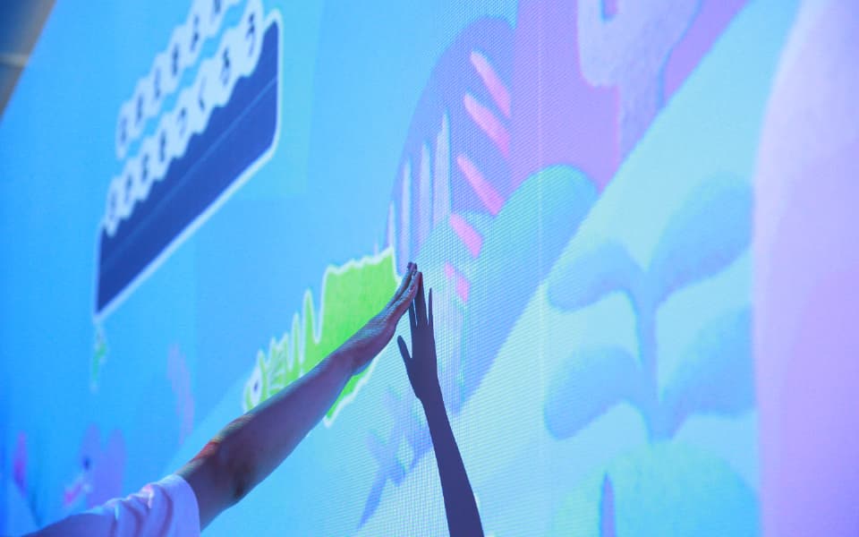 When a person speaks into the microphone, the waveform of the sound is analyzed and fish of various colors and shapes begin to swim in the aquarium. The shape of the fish changes depending on the volume and length of the voice, as well as the combination of high and low pitch, so that many different kinds of fish are created by each individual voice. Furthermore, when you touch the created fish, the fish will speak the words that was spoken into the microphone.