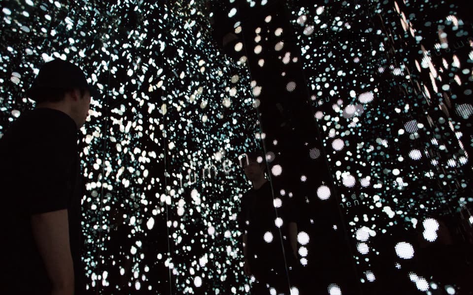 A special exhibition for “Capturing Sounds” held at the Kyoto Okazaki Music Festival 2017 OKAZAKI LOOPS on June 10 and 11, 2017. A space with nothing but light and sound. In a room with a laminated mirror using LED displays and a half-mirror, light and music are emerging endlessly, giving visitors the sensation of entering "inside" the sound and light.